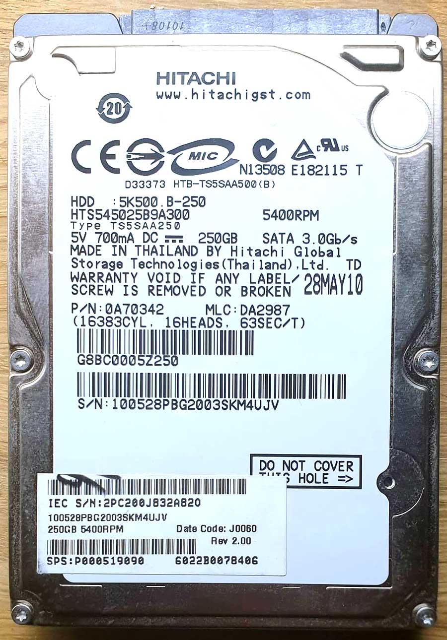 Hitachi HTS545025B9A300 DA2987 28-MAY-2010